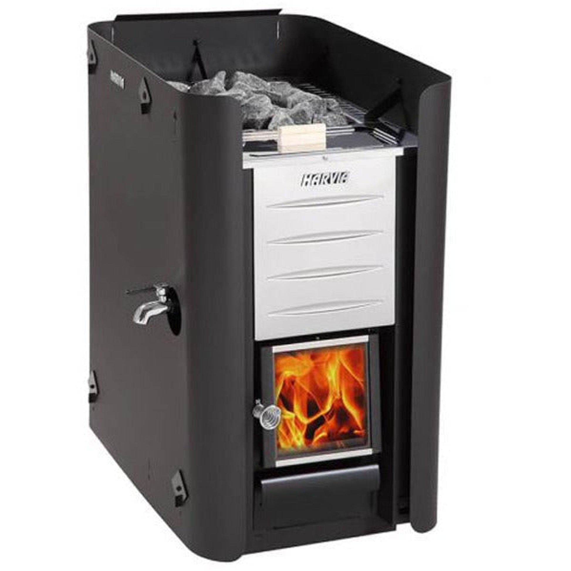 The Harvia WL650 protective sheath is designed and approved for wood-heated Harvia wood burning heaters (Harvia Pro 20 ES). The protective sheath considerably reduces the safety distance to combustible materials – in practice, this makes the wood burning heater fit in a smaller space. The protective sheath is attached to the wood burning heater and conforms to the shape of the wood burning heater, making the combination sleek.